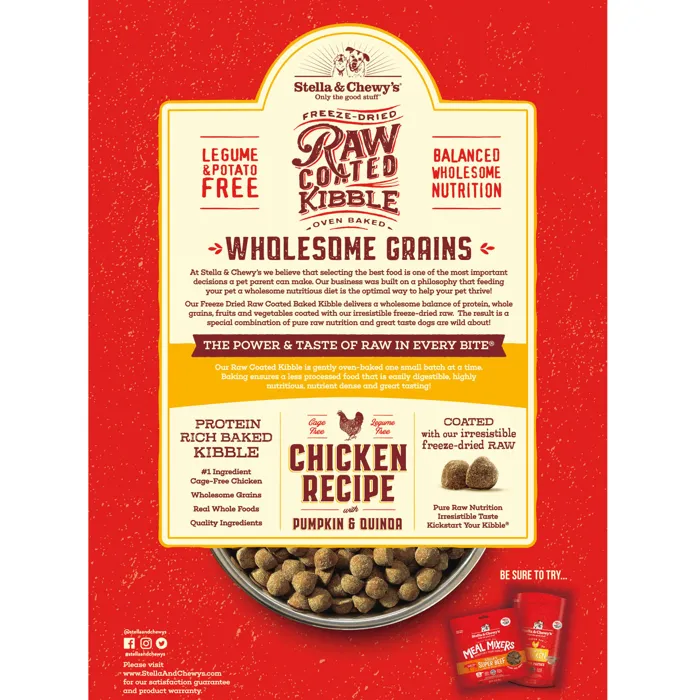 CHICKEN RECIPE WITH PUMPKIN & QUINOA RAW COATED KIBBLE WHOLESOME GRAINS 22#